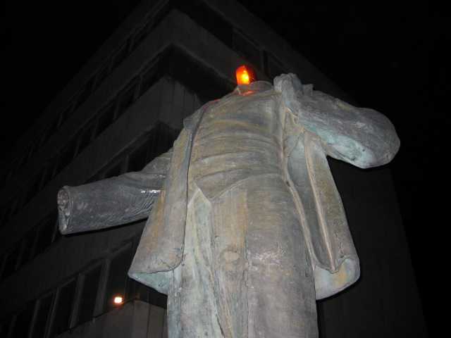 しかし、このエストニア/パルヌでは完全に違う様だ。レーニンの像があるのだが、首がないのだった。頭の部分には黄色いライト(ガス工事か何かで使う、くるくる回るやつ)が付けてあってレーニンを茶化している。