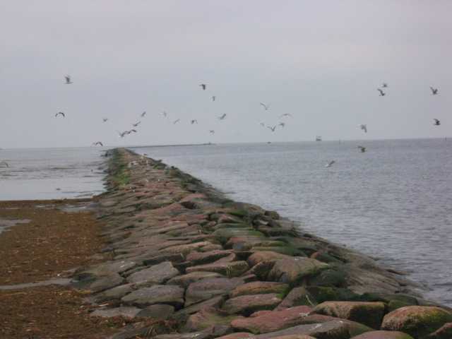 ビーチの先端まで行くと、石垣で出来た堤防がある。パルヌ灣に注ぐパルヌ川の水路を確保する為に、海の先まで2キロ以上伸びている。その川は、幅が70メートルくらいあって結構な規模だ。時々割と大きな船も通っている。