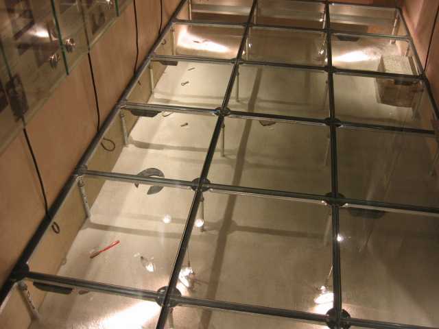 強化ガラスで出来た床下には、靴や眼鏡、人骨などがポツポツと散乱している。処刑された遺体は、現在のロシア領に運ばれたものもあって、今だにわからない事が多いらしい。