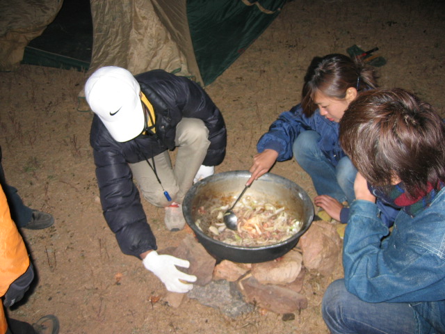 モンゴルは現在サマータイム中である為、日本との時差はない。しかし実際の経度は、2時間時差のあるジャカルタとウランバートルは同じなので朝は遅く日が昇り、遅く日が沈む。20時でもまだ明るいがテントを設営し、食事の為のかまどを作り火を起こした。