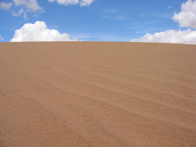 鳥取砂丘に行ったことのある仲間の話によれば、ここの砂ははるかに細かいということだった。