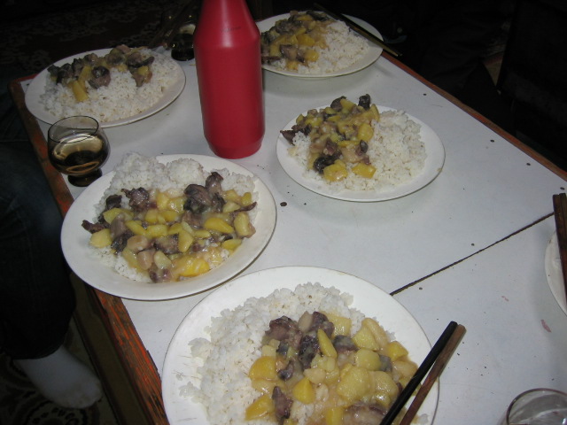米は、炊き具合といい、おいしそうな匂いといい、北京で食べたどの米よりも美味しい。少ない水で研ぐのも大変と思うが、ぬか臭くもない。冷えた状態でもまずまずだ。
