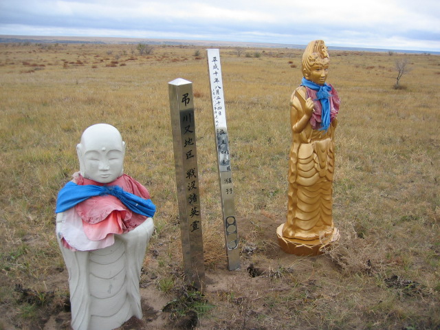 ハルハ川の川岸を歩いていると、観音像と仏像があった。いずれも1メートル程度のものでプラスチック製だ。ハルハ川の対岸に向いている。そうつまり日本兵士が多く亡くなった場所だ。