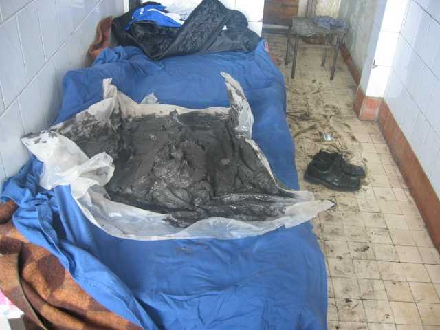 診察台のようなところに毛布と薄い生地がかぶせてある。そこへさらに1メートル四方のビニール。そこへバケツ2杯分の泥。チャコールグレイのこの泥はまるで中村屋のあんまんそっくり。おまけに温泉で温められているので湯気が盛んに出ている。全裸の私を尻目に女性スタッフはこの泥を5分もこねていた。