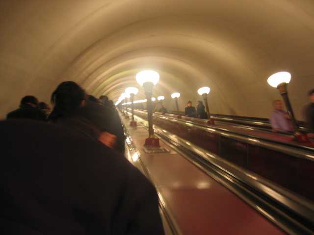 まずは宿に戻る事にした。地下鉄を降りて、駅のエスカレーターに乗る。ロシアの地下鉄は実に深いところを走っていることで有名だ。日本よりエスカレーターが少し早いが、前日に計ったらちょうど3分乗っていた。距離にすると、たぶん130メートルくらい。
