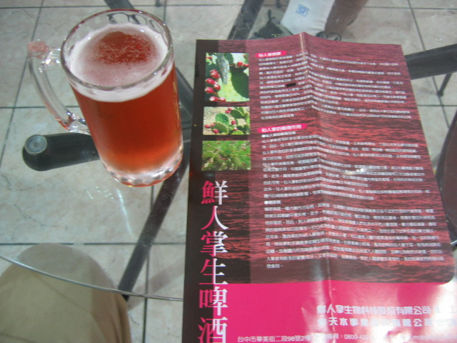 次に向かったのがビール。台湾生ビールと鮮人掌生ビールの2つの種類がある。紙コップで出されるのは気に入らないが、鮮人掌生ビールというのは始めてだ。300ccのやつを注文すると、前の二人の客とは違い、冷蔵庫からジョッキを出してくる。分かっているじゃあないか。ビール