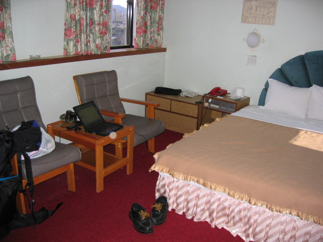 高雄のバスターミナルで降りると一人のおやじが日本語で声を掛けてきた。ホテルの斡旋だ。初めて高雄に来た時に、最初に泊まった天佑ホテルは860元だった。台北もとんでもないビルの部屋で700元だ。大都市は高いという認識でいたので、このおやじの650元というのは眉唾だ。しかも持っているパンフレットを見ると、全然悪くない。電話もある様だ。もしかしたらインターネットが使えるかもしれない。