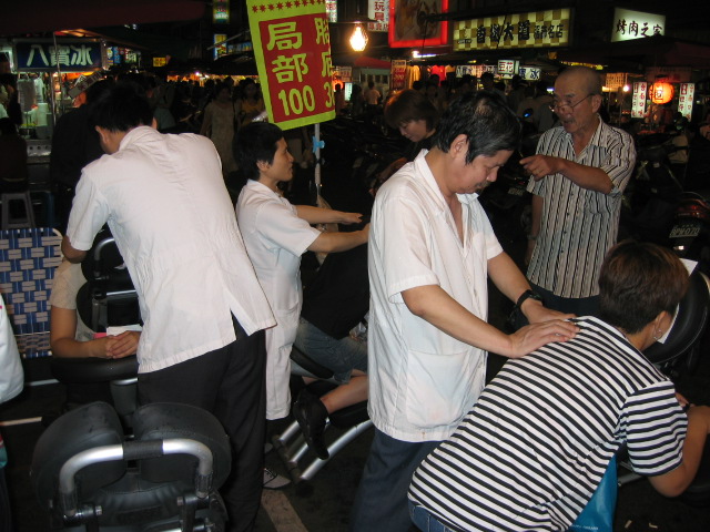 おじさんが日本語で100元だと8分。200元だと20分よ、と言いながら揉んでくれた。